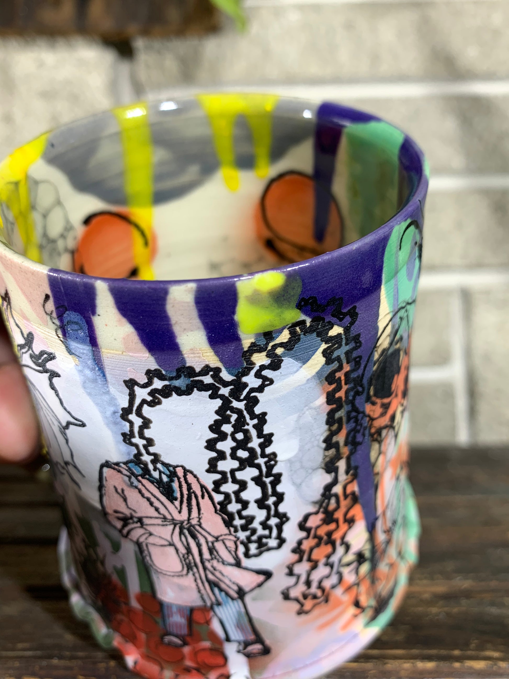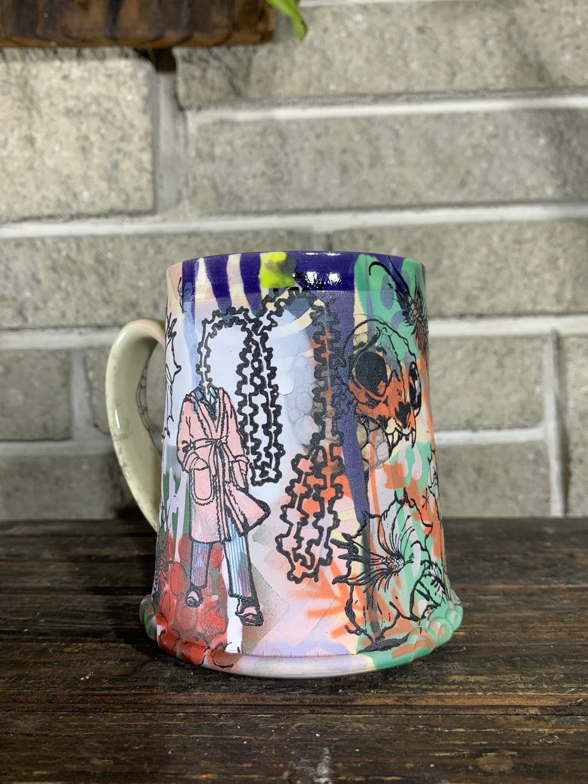 This mug is discounted as a second. Final photo highlights a chip in the rim that I have reglazed. She’s still fully functional!